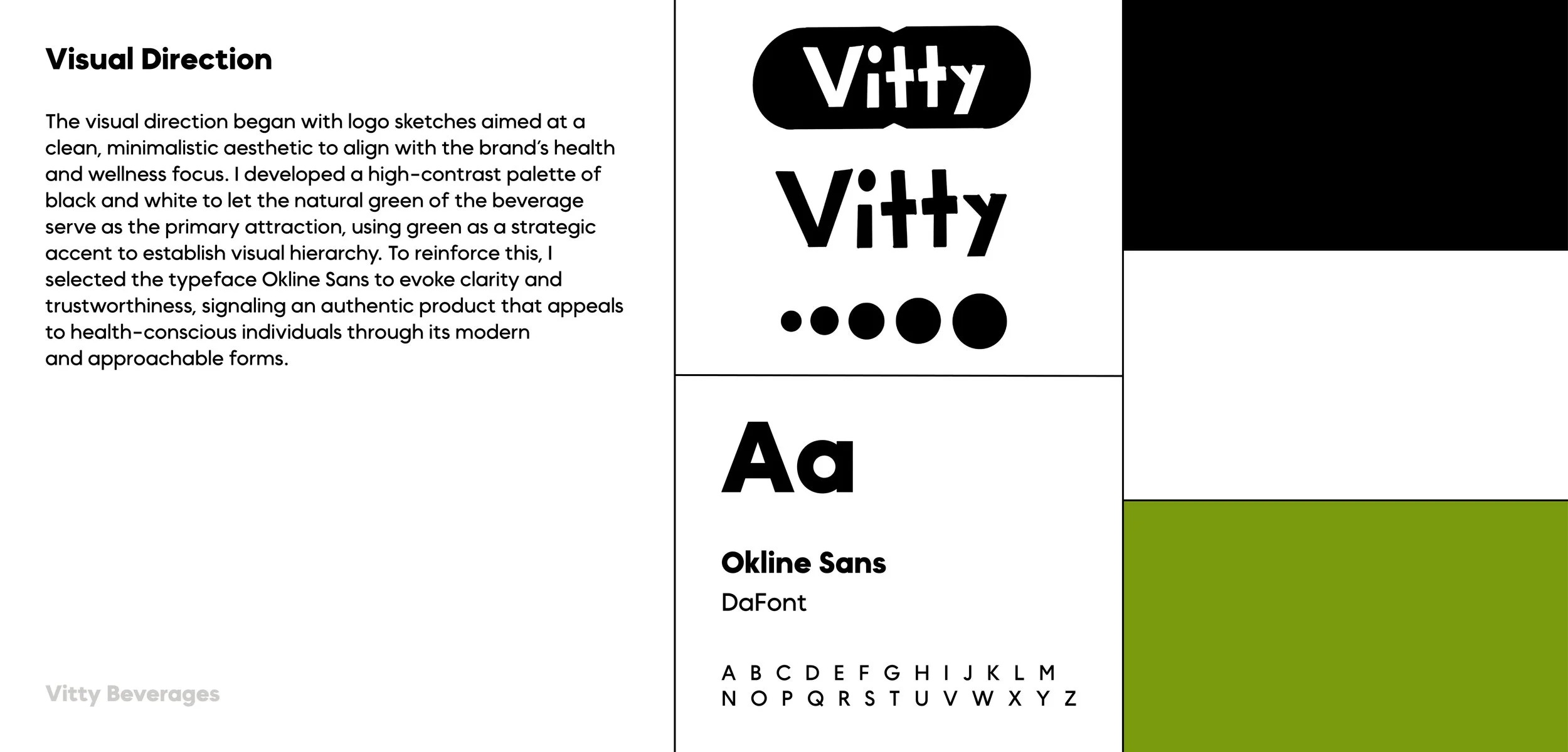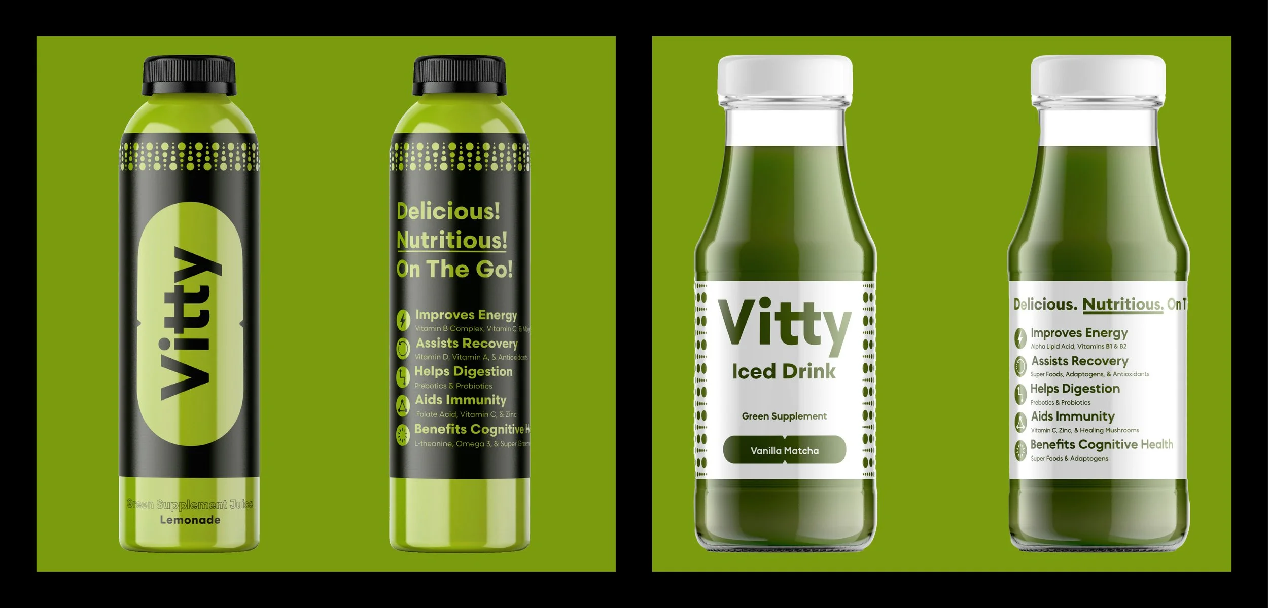 I designed a minimalist packaging system for Vitty, a nutritional beverage company, to emphasize its science-first approach and resonate with everyday customers. I translated this vision into a clean visual identity applied across the packaging to highlight product quality and help the brand stand out in a competitive market with a focus on approachable nutrition.